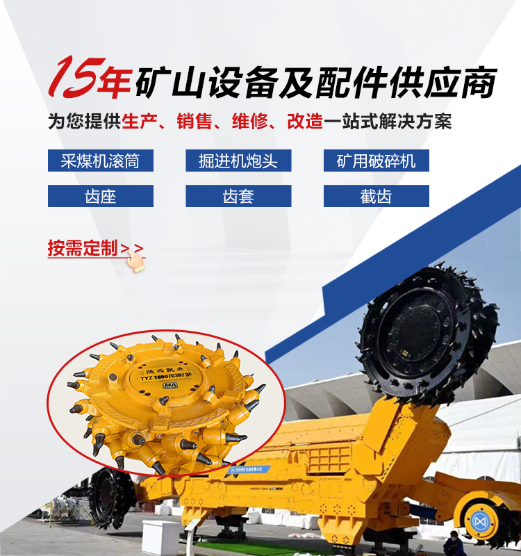陕西凯业矿山设备有限公司成立于2009年,公司位于陕西省西咸新区泾河新城美国科技产业园B6区,占地20亩内建有80套智能化设备和13000平方米厂房,现有职工89人,其中本科学历以上15人,中、高.级工程师6人,各类技师二十余人。注册资金为8000万元,注册地为陕西省工商局。主要从事矿山设备制造、维修、改造(采煤机滚筒与掘进机截割头)及配件的加工生产,公司依据“一研二拓三修四造”的模式发展,即:-研:矿用采煤机滚筒、掘进机炮头等新技术、新材料、新工艺研发。二拓:重型破岩滚筒、重型掘进机截割头、重型破碎机齿辊(转子)、智能筒仓清堵机。...